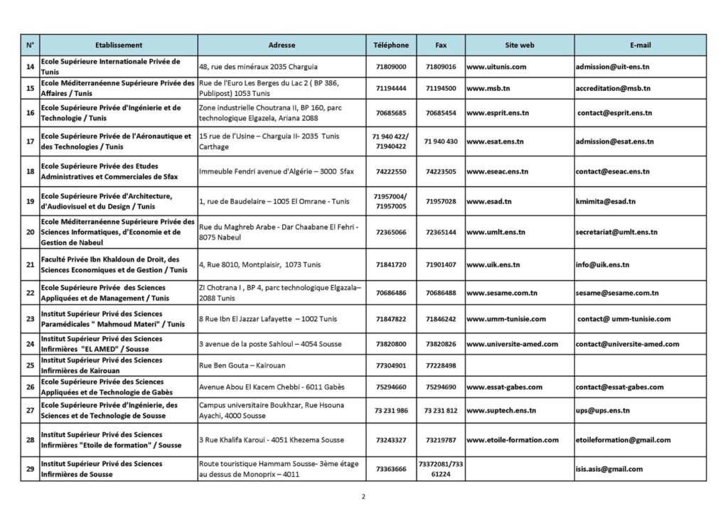 Liste des établissements privés d’enseignement supérieur agréés par le ministère de l’enseignement supérieur et de la recherche scientifique pour l’année universitaire 2017-2018