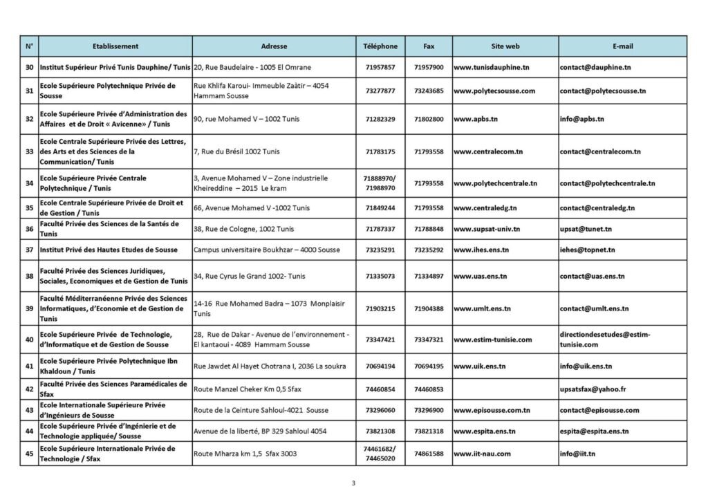 Liste des établissements privés d’enseignement supérieur agréés par le ministère de l’enseignement supérieur et de la recherche scientifique pour l’année universitaire 2017-2018