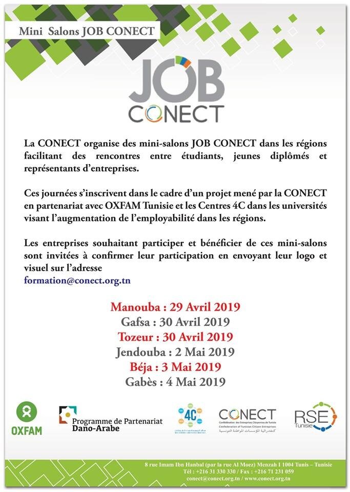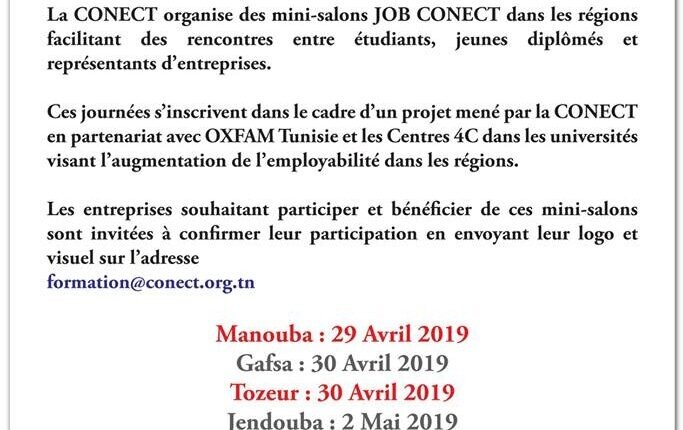 اليوم كونكت قابس تنظم ملتقى تحت عنوان » CONECT JOB » و توفرلكم الفرصة للشغل و التشغيل.