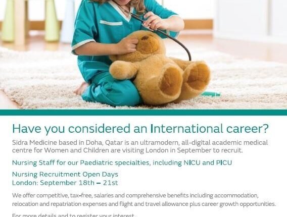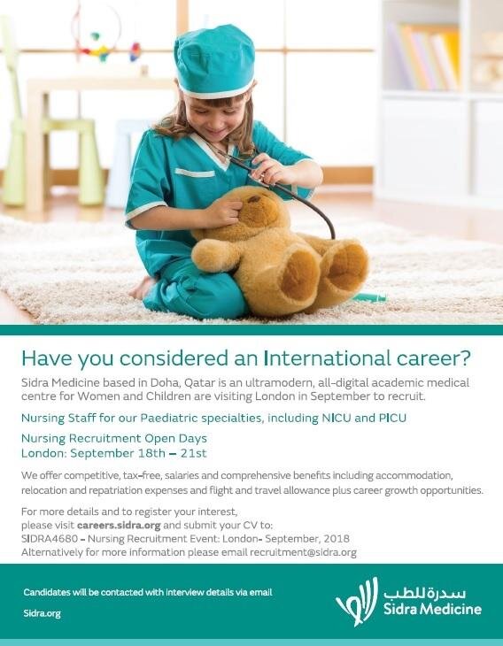 We will be in UK on 18-21 September, 2018 to attend the RCN Nursing Job Fair in London followed by Sidra Recruitment event to interview the Clinical Nurses specialized in Paediatric care based in UK.