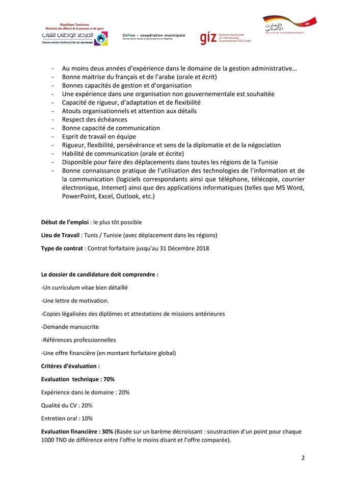 | Objet | recrutement d’un(e) consultant administratif(ve) pour le projet cadre tuniso-allemand ‘lappui aux institutions de jeunes |