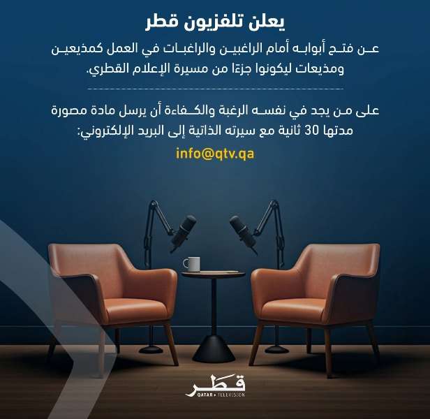 Pour postuler, envoyez votre CV et votre lettre de motivation par e-mail à info@qtv.qa