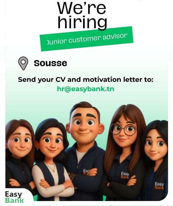 Pour postuler à cette offre d’emploi veuillez visiter 𝐞𝐚𝐬𝐲𝐛𝐚𝐧𝐤.𝐭𝐧.