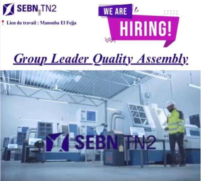 SEBN Manouba El Fejja recrute un 𝐆𝐫𝐨𝐮𝐩 𝐋𝐞𝐚𝐝𝐞𝐫 𝐐𝐮𝐚𝐥𝐢𝐭𝐲 𝐀𝐬𝐬𝐞𝐦𝐛𝐥𝐲 pour superviser et garantir la qualité de l’assemblage des produits. Vous serez responsable de la gestion de l’équipe qualité, du suivi des procédures et de l’amélioration continue des processus.