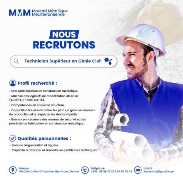 Vous êtes passionné par la construction et possédez des compétences en gestion de projets, conception de structures, et suivi de chantiers ?Nous cherchons un profil dynamique et qualifié pour rejoindre notre équipe.