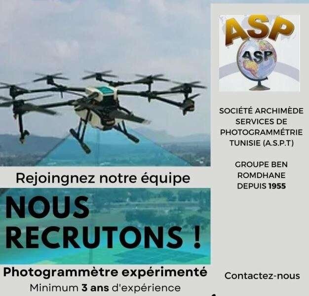 Notre bureau d’étude A.S.P.T, situé à Nabeul, est actuellement à la recherche d’un photogrammètre expérimenté pour rejoindre notre équipe.