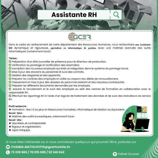 ◾ Formation : Bac+3 ou plus en Ressources Humaines, Informatique de Gestion ou équivalent.