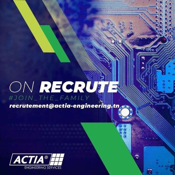 Dans le cadre de renforcement de nos équipes équipe, ACTIA Engineering Services (Site Tunis)