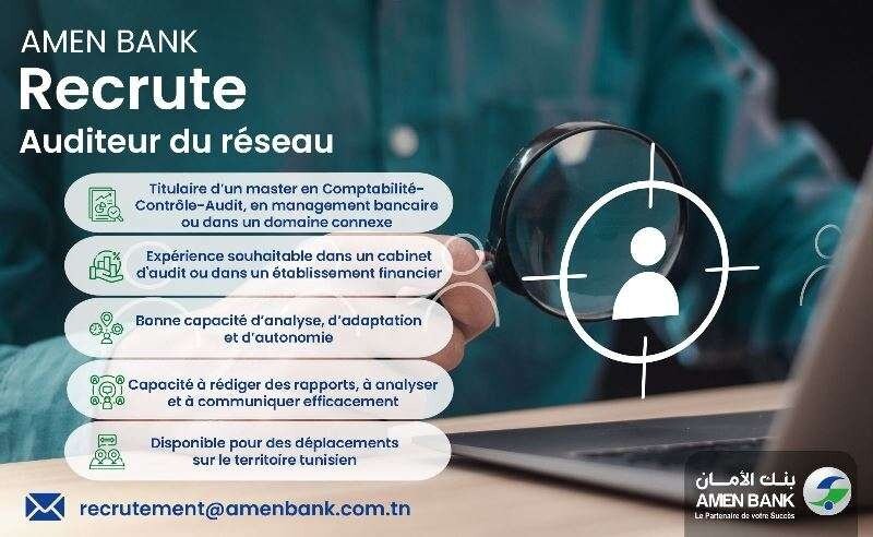Nous vous invitons à nous rejoindre en qualité d’auditeur pour le réseau des points de vente d’AMEN BANK.