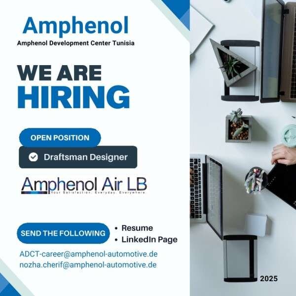 🌍 On behalf of Amphenol Air LB, Amphenol Development Center Tunisia is looking for a