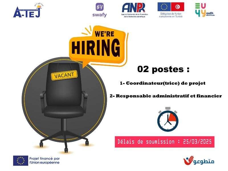 L’Association Tunisienne de l’Enfance et de la Jeunesse (ATEJ) lance un appel à candidature pour le recrutement de deux (2) postes dans le cadre du projet GreenTech Siliana.