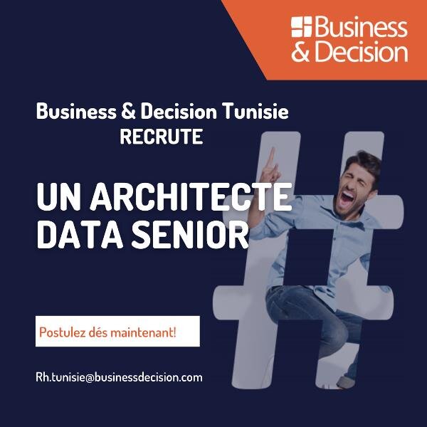 Filiale du Groupe Orange spécialisée dans le consulting et l’intégration de systèmes. Forte d’une expertise unique dans les domaines Data et Digital. Business & Decision Tunisie contribue à la réussite des projets de ses clients locaux et internationaux (US, Europe, MEA) en leur offrant les solutions les plus innovantes. Nous sommes reconnus pour notre expertise fonctionnelle et technologique par les plus grands éditeurs de logiciels du marché avec lesquels nous avons noué des partenariats stratégiques.