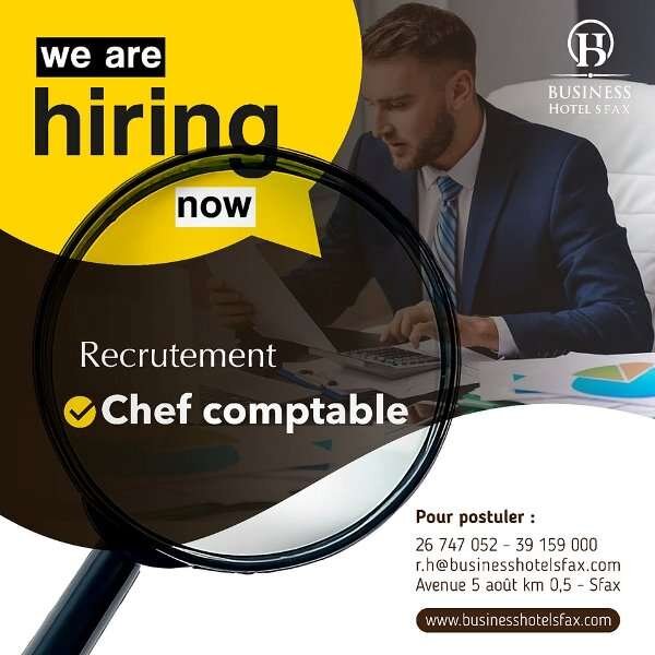 Rejoignez l’excellence et faites partie d’une équipe dynamique au sein de Business Hotel Sfax, l’un des hôtels les plus prestigieux de la région. Nous recherchons un Chef Comptable talentueux et expérimenté pour piloter notre département comptabilité avec rigueur et passion.