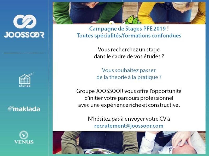 Campagne de Stages PFE 2019 au sein du Groupe JOOSSOOR Stage