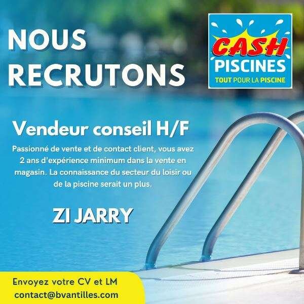 Groupe de 200 collaborateurs, leader sur ses marchés dans la distribution spécialisée aux Antilles, recherche pour le développement de son enseigne Cash Piscines Guadeloupe, un Vendeur Conseil H/F confirmé(e). Ce poste est ouvert et disponible de suite.