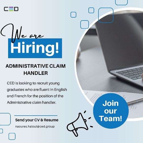 L’entreprise CED cherche à recruter des jeunes diplômés qui maitrisent bien le Français et l’Anglais pour le poste d’Administrative claim handler.