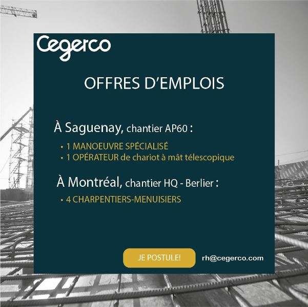 Nous avons des postes disponibles à Montréal et à Saguenay.