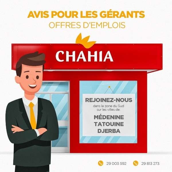 pour nos points de vente dans la zone du Sud, essentiellement sur les villes de Médenine, Tataouine et Djerba.