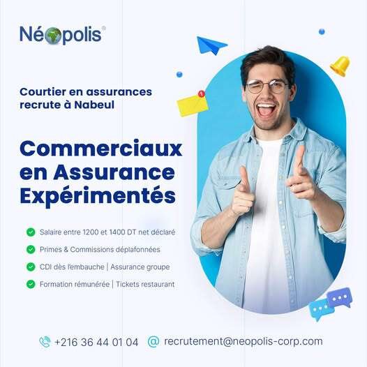 - Sodedif-Neopro, courtier en assurances depuis plus de 40 ans, recrute des commerciaux en télévente spécialisés en assurance de personnes (santé, emprunteur, prévoyance) pour renforcer son équipe dynamique à Nabeul !