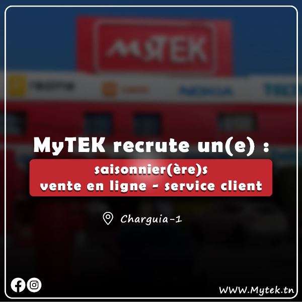 Pour postuler, envoyez votre CV et votre lettre de motivation par e-mail à recrutement@Mytek.tn
