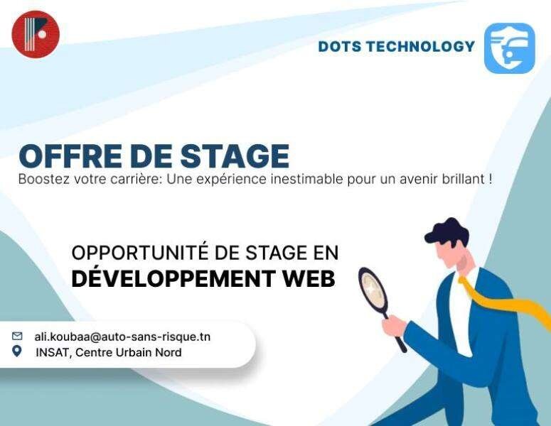 DOTS TECHNOLOGY, une startup labellisée dans le domaine de l’automobile en Tunisie, est à la recherche active d’un(e) stagiaire en développement web pour rejoindre son équipe dynamique.