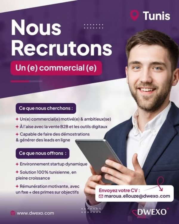 Dans le cadre de son développement, DWEXO recrute un(e) commercial(e) motivé(e), polyvalent(e) et ambitieux(se) pour rejoindre son équipe dynamique ! 🚀
