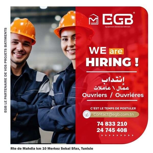 Dans le cadre du développement de nos activités au sein de notre entreprise EGB,