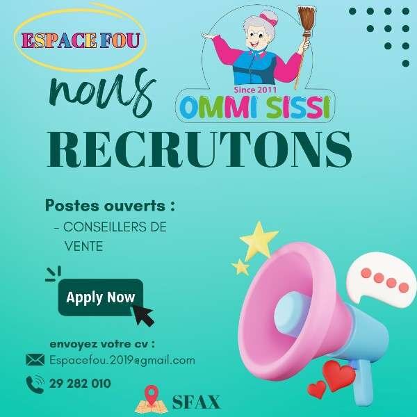 NOUS recherchons a recruter pour notre magasin Espace fou SFAX