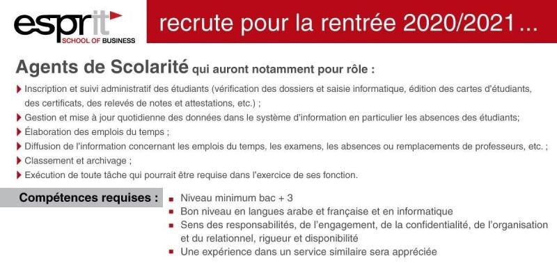 ESPRIT school of business / recrute [offre d’emploi n°3-6/20]