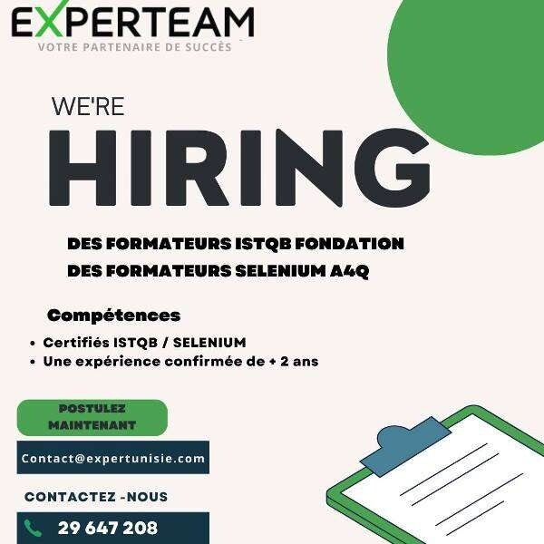 Dans le cadre de développement de notre équipe , notre partenaire Expert Team Tunisie