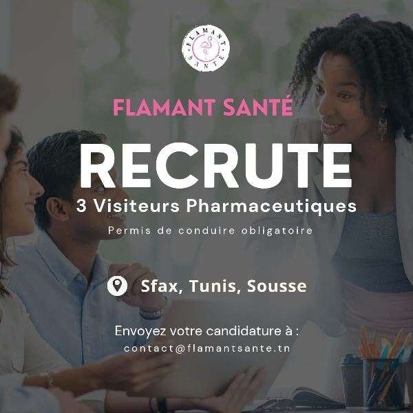 FLAMANT SANTÉ, un distributeur tunisien local de compléments alimentaires et de produits parapharmaceutiques, est à la recherche de 3 visiteurs pharmaceutiques dynamiques et engagés, basés à Tunis, à Sousse et à Sfax.