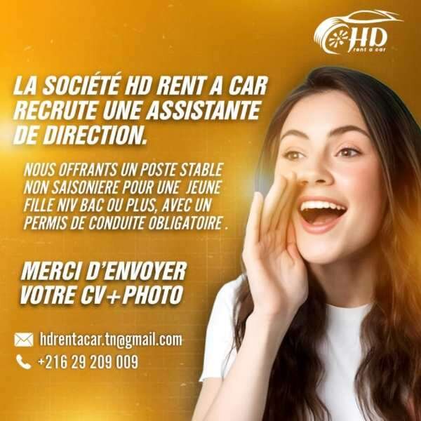 Nous offrants un poste stable non saisonnière pour une jeune fille niveau bac ou plus, avec un permis de conduite obligatoire .Merci d’envoyer votre cv+photo. Email :