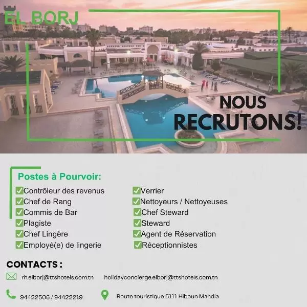 HÔTEL EL BORJ MAHDIA / recrute CDD
