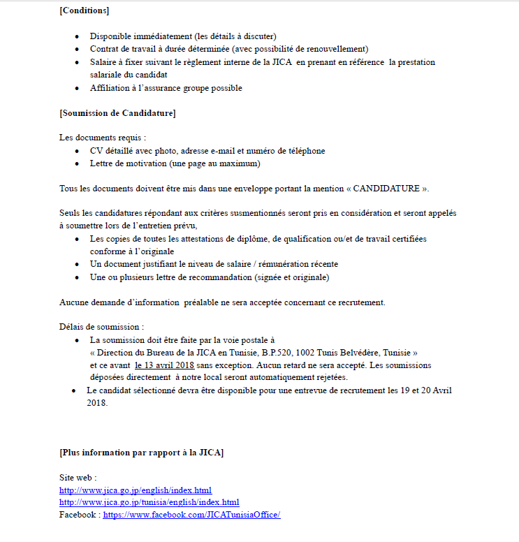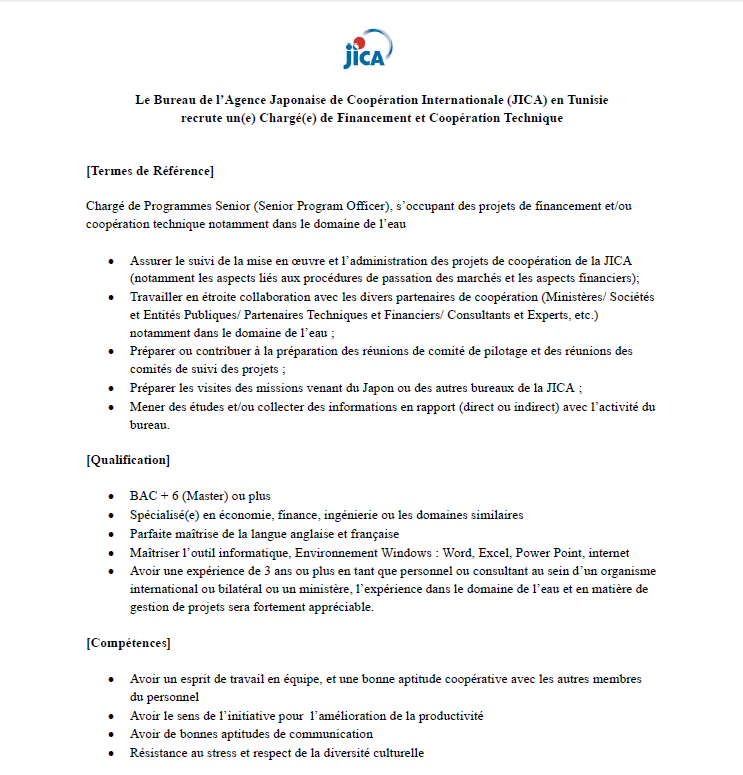 [ANNONCE] : RECRUTEMENT ! Pour les besoins de son bureau basé à Tunis,
