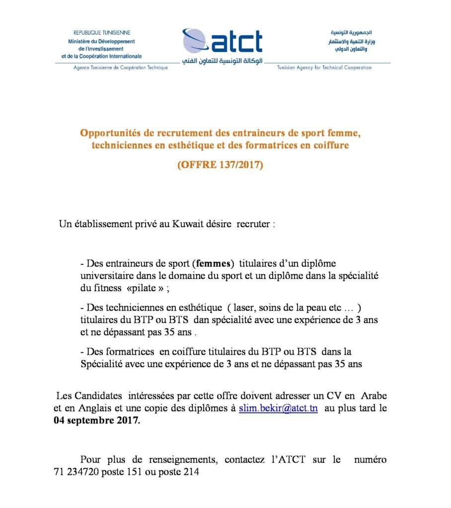 Koweït : Opportunités de recrutement des entraineurs de sport femme, techniciennes en esthétique et des formatrices en coiffure