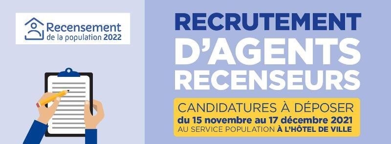 La campagne de recrutement d’agents recenseurs a lieu du lundi 15 novembre au vendredi 17 décembre 2021