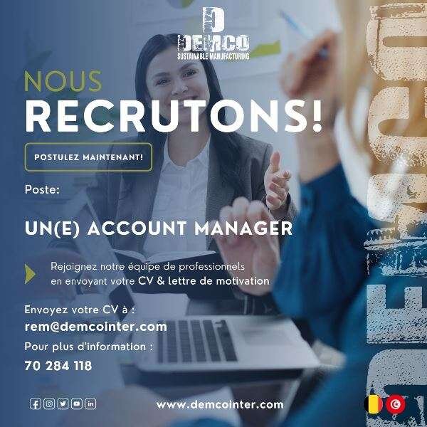 Intéressé de faire partie d’un grand groupe Belgo-Tunisien employant plus de 4500 employés, n’hésitez pas à envoyer votre candidature (CV et Lettre de motivation) à