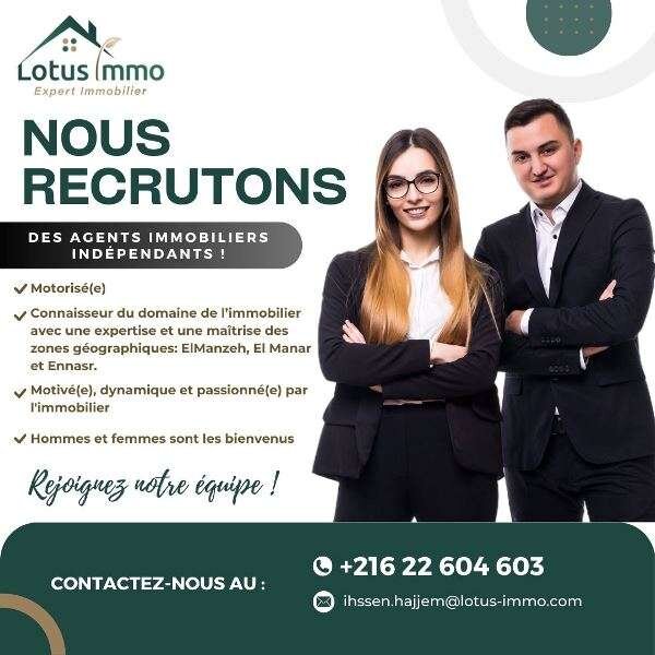 ✅ Connaisseur du domaine de l’immobilier avec une expertise et une maîtrise des zones géographiques: ElManzeh, El Manar et Ennasr.