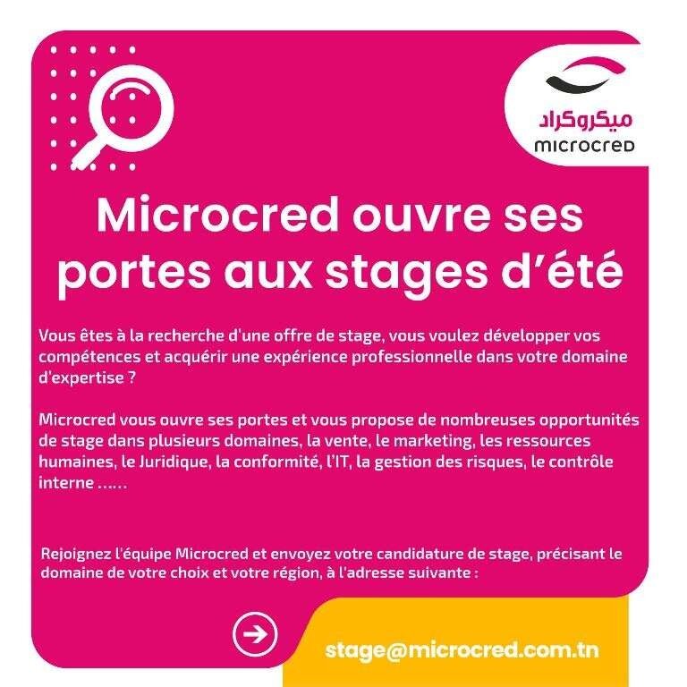 Rejoignez l’équipe Microcred et envoyez votre candidature de stage, précisant le domaine de votre choix et votre région, à l’adresse suivante :