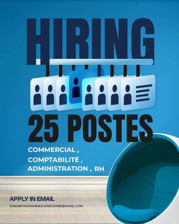 nous sommes à la recherche de plusieurs profils dans plusieurs départements au sein de notre entreprise