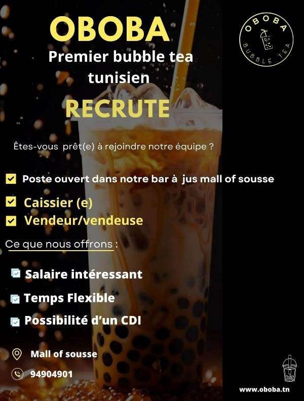 Nous sommes à la recherche de personnes dynamiques et passionnées pour rejoindre notre équipe au sein de notre » OBOBA SHOP » situé dans le prestigieux mall of sousse