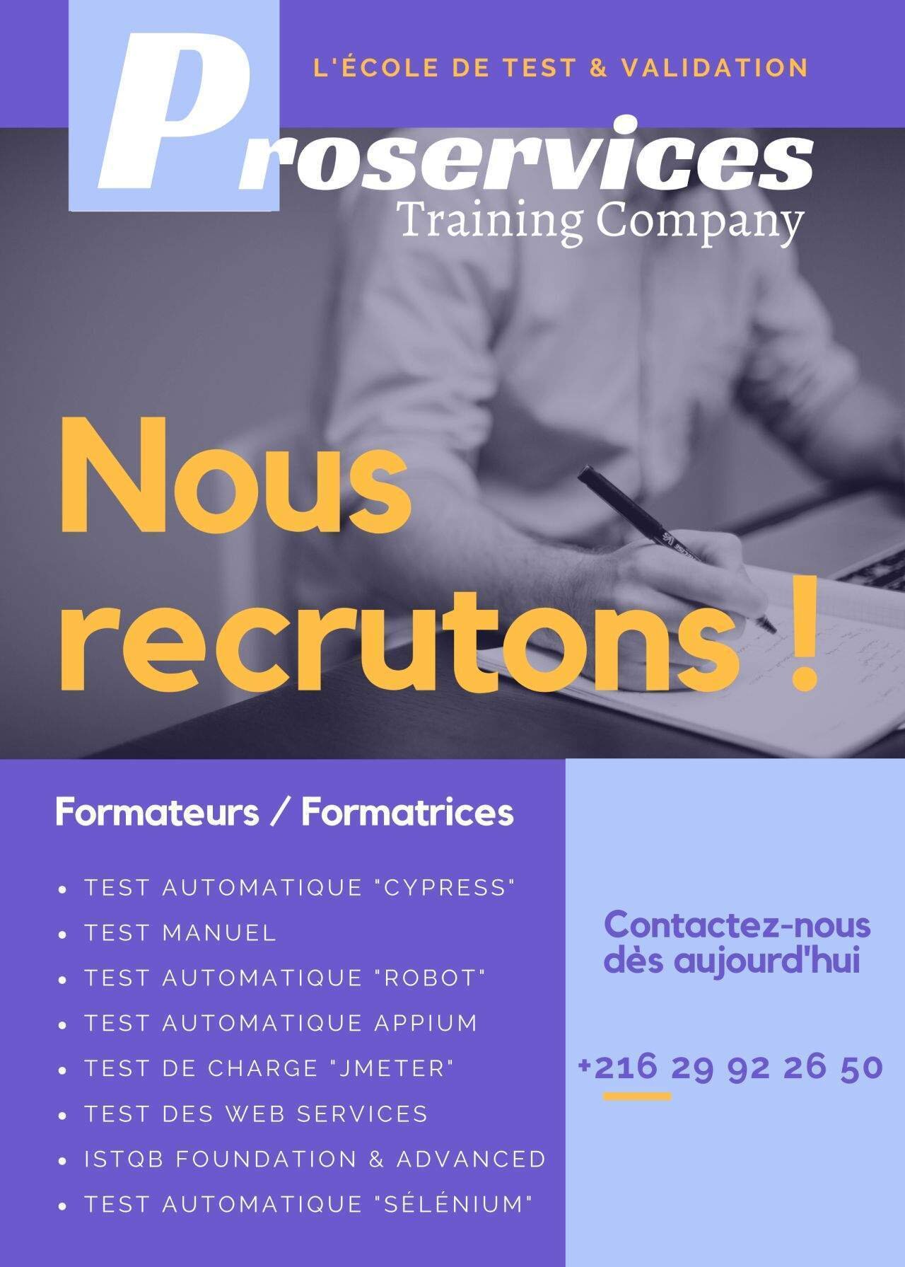 ProServices Tunisie est un cabinet de formation et consulting basé à Tunis Ariana, cherche pour ses besoins