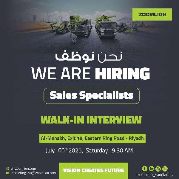 Sales Specialists at Zoomlion Saudi Arabia CDD