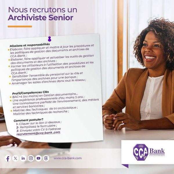 Pour postuler, envoyez votre CV et votre lettre de motivation par e-mail à recrutement@cca-bank.com