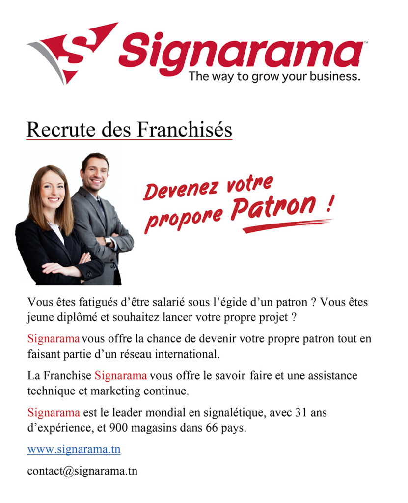 Signarama recrute des Franchisés sur le grand Tunis et dans tous les Gouvernorats.