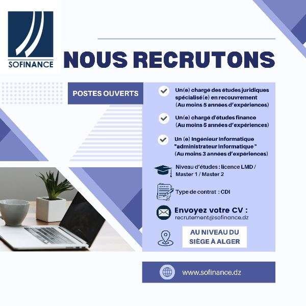 📢 Nous recrutons trois profils au niveau de notre siège a Alger !