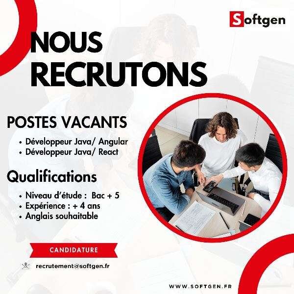 Nous sommes à la recherche de talents pour rejoindre notre équipe dynamique chez SOFTGEN :