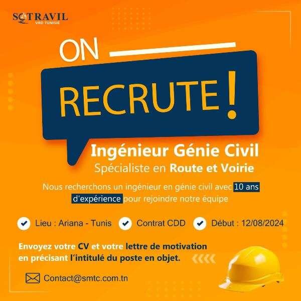 Nous recherchons un ingénieur en génie civil avec 10 ans d’expérience 👌 pour rejoindre notre équipe 🚨 en tant que spécialiste en #Route et #Voirie. Le candidat idéal aura une expertise approfondie dans la conception, la planification et la gestion des projets #routiers et d’#infrastructures de #voirie 🚧🚜🛣️