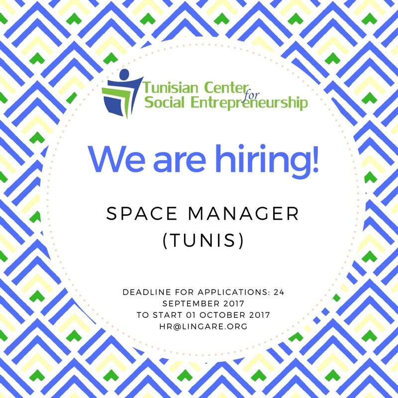 TCSE, Tunisian Center for Social Entrepreneurship, a national organization based in Tunis and working on Social Entrepreneurship is recruiting a Space Manager for its innovation space LINGARE in Tunis.