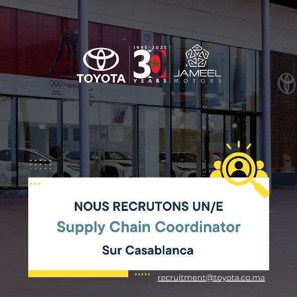 Toyota du Maroc recherche un Supply Chain coordinator dynamique et organisé pour rejoindre son équipe Supply Chain. Si vous avez un esprit analytique, une maîtrise de la logistique et une envie d’évoluer dans un environnement structuré et international, ce poste est fait pour vous !